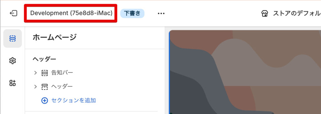 Shopifyのコマンド(shopify theme dev)で、「Development」という、一時的な開発テーマを立ち上げることができます。