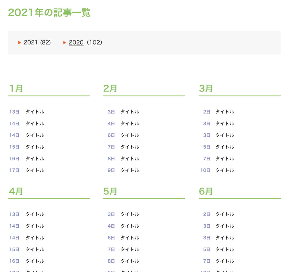 ですが、年アーカイブで「月ごとにタイトルのリストを作りたい」ということがありました。